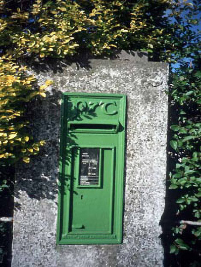 Cast-iron wall mounted post box, c.1970, with P & T monogram. Founder's mark reads, 'Jessop Davis Enniscorthy'.