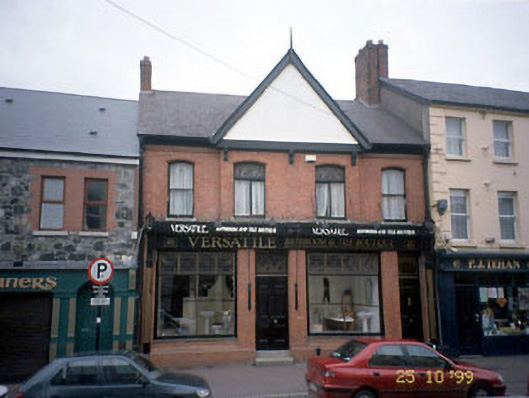 Terraced four-bay two-storey former house, built 1896, with gabled breakfront. Red brick façade with bracketed shopfront. Now also in use as retail outlet. Double-pitched roof, natural slates, iron gutters, brick chimney stacks. Brick walls, moulded brick eaves course, painted nap rendered gable, rubble stone rear wall. Stone cills, moulded brick arrises, timber casement and single pane sash windows, full-width timber shopfront with canvas awning.