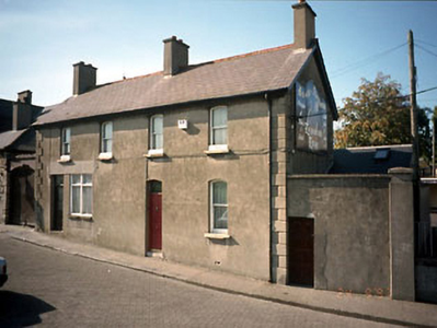 Detached four-bay two-storey house, built 1923, with segmental-headed openings and original timber sash windows. Retail outlet inserted c.1930. Shopfront and retail outlet now removed. Double-pitched roof, natural slates, deal fascia and barge boards, iron gutters, rendered chimney stacks. Nap rendered walls with quoins. Concrete cills, segmental-headed openings, single pane deal sash windows, plain display window inserted, timber panelled door with plain fanlight over.