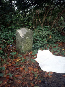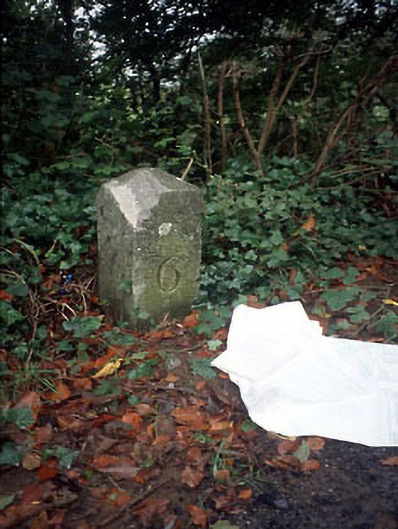 Limestone milepost, c.1795, inscribed on three faces '6'.
