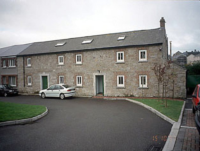 Detached seven-bay two-storey former outbuilding, c.1870. Exposed rubble façade with flush brick window surrounds and rusticated door openings. Refurbished and extended as offices, c.1995. Double-pitched roof, projecting eaves course, natural slates, Velux rooflights, brick chimney stack, artificial slate to extension. Exposed rubble limestone walls, painted nap rendered to extension. Flush brick surrounds to window openings, limestone door case, uPVC casement windows, timber doors.