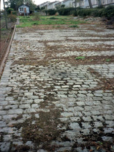 Station platform with expanses of stone-set paving, c.1885.
