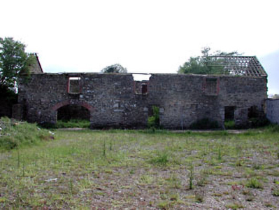 Detached five-bay two-storey house, built c. 1810, now derelict. Rendered to ground floor, with roughcast rendered walls to first floor, having raised quoins. Pitched tile roof. Render window surrounds to two ground floor openings. Round-arched door opening with block-and-start doorcase, cornice and stone step. Remains of timber sash windows to first floor. Two-storey return to rear. Remains of limestone outbuilding with stone and red brick dressings to rear.