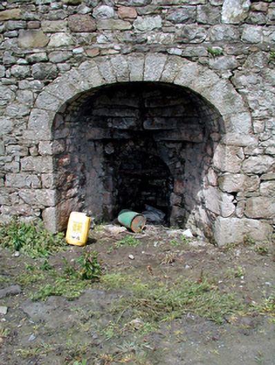 Square-plan limekiln, built c.1800, now disused. Roughly dressed limestone walls with ashlar voussoirs to segmental-arch opening. Built into limestone outcrop.