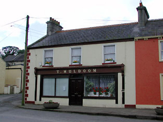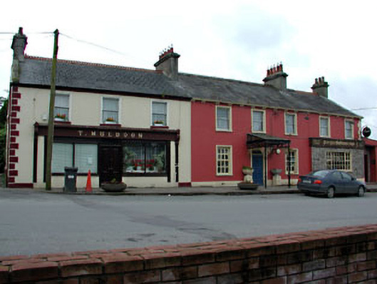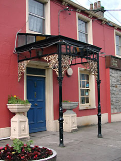 Pair of former three-bay two-storey houses, built c.1840, extended by two-bays to the west to accommodate later use as hotel. Now in use as three-bay house to the east and five-bay public house to the west. Pitched slate roof with rendered chimneystacks and cast-iron rainwater goods. Rendered walls with render quoins. Early twentieth-century timber shopfront to east end. Square-headed window openings with render surrounds and stone sills, some with timber sash windows. Timber panelled door with overlight and render surround. Cast-iron colonnettes with stained glass canopy, cast-iron lettering and cast-iron brackets.