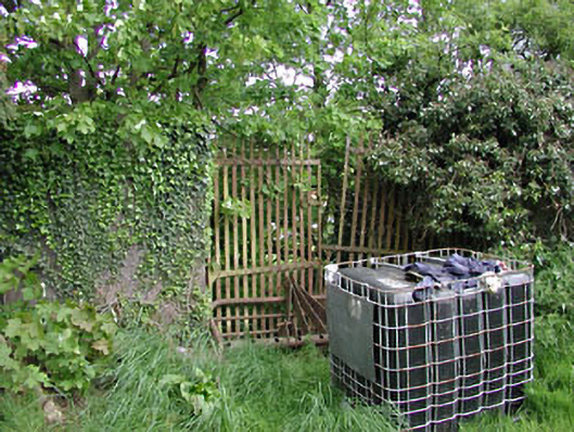 Detached seven-bay two-storey former mill outbuilding, built c.1860, with pitched slate roof and stone walls. Square-headed windows openings with stone sills. Limestone dressed gun loops to first floor. Concrete steps to south gable, leading to first floor door opening. Cast-iron gate with rendered piers to west. Now in use as farm outbuilding.