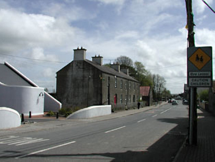 Pair of semi-detached four- and three-bay two-storey roughcast-rendered houses, built c.1840, with segmental-arched door openings. Square-arched window openings with stone sills. Replacement doors and uPVC windows. Pitched tile roof with rendered chimneystacks. Cast-iron railings and gates to front elevations. Rubble stone boundary wall to west.