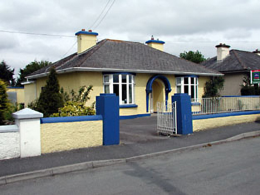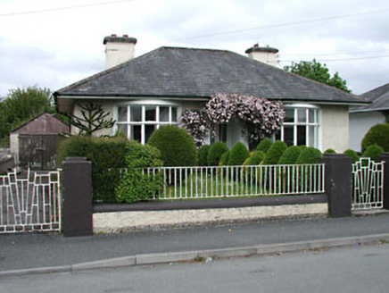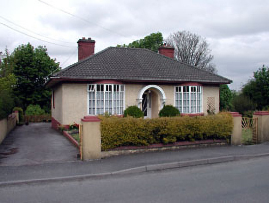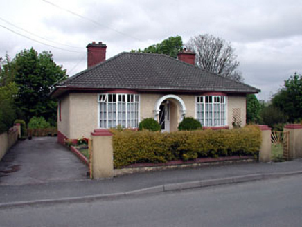 Group of four detached three-bay single-storey roughcast houses, built c.1940. Central recessed porches with curved concrete canopies, flanked by bow windows. Hipped tile roofs and rendered chimneystacks. Cement rendered piers and plinths with cast-iron railings and gates to front.