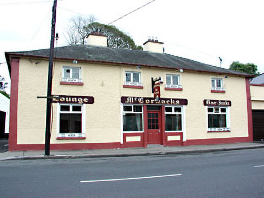 Former group of three terraced houses, built c.1825, now in use as four-bay two-storey house and public house. Roughcast rendered walls. Hipped slate roof with rendered chimneystacks and cast-iron rainwater goods. Square-headed openings with rendered surrounds and stone sills. Shopfront with render pilasters to ground floor. Limestone outbuildings to rear.