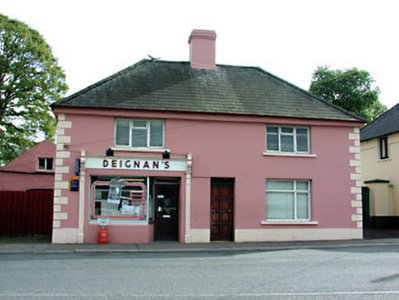 Detached three-bay two-storey former police station, built c.1830, now in use as house and shop. Rendered walls with render quoins. Hipped slate roof with rendered chimneystack. Early twentieth-century timber shopfront with panelled pilasters and brackets, fascia with raised lettering and cornice. Stone outbuildings to rear.