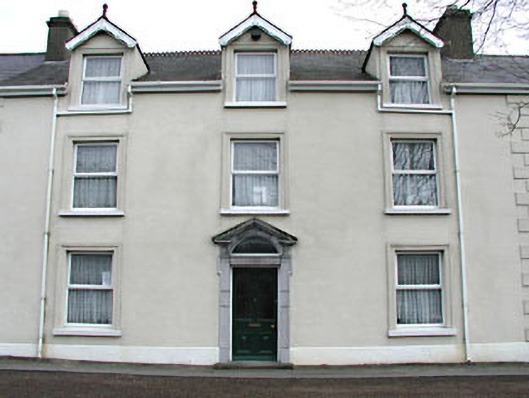 Terraced three-bay two-storey house, built c.1780, with attic storey addition. Pitched slate roof with ridge cresting and rendered chimneystacks. Rendered walls with rendered quoins. Rendered architrave window surrounds with stone sills. Gabled attic windows. Pedimented stone doorcase with lugged surround.