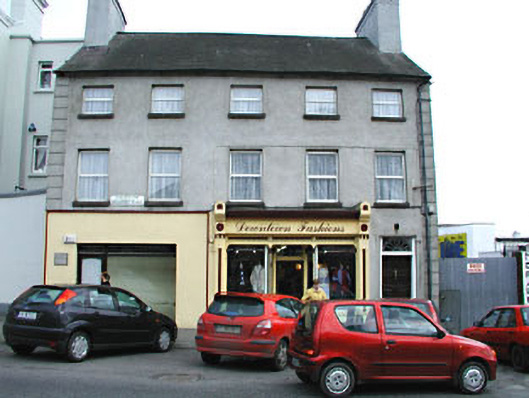 Detached five-bay three-storey house, built c.1830, with an early twentieth-century shopfront to ground floor. Pitched slate roof with rendered chimneystacks. Rendered walls with channelled quoins. Square-headed door opening with petal overlight. Early twentieth-century shopfront with panelled pilasters supporting fascia and cornice, having recessed display windows with cast-iron colonnettes. Terrazzo to porch. Modern office front to west.