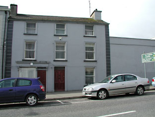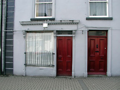 Semi-detached three-bay three-storey house, built c.1900, with timber shopfront to ground floor. Pitched tile roof with rendered chimneystacks. Rendered walls and quoins. Rendered architraves to timber sash windows. Rendered architraves to timber panelled doors and overlights. Timber shopfront fixed window and pair of timber panelled doors, flanked by pilasters with carved console brackets, supporting timber fascia with dentil cornice.
