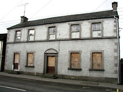 Detached five-bay two-storey house, built c.1770. Pitched tile roof with rendered chimneystacks. Roughcast rendered walls with tooled stone quoins and string course. Stone block-and-start surrounds and stone sills to timber sash windows. Round-arched stone doorcase with reeded pilasters approached by stone steps. Outbuildings to the rear.