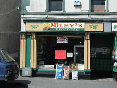 End-of-terrace four-bay two-storey former house, built c.1890, now in use as two shops. Pitched slate roof. Rendered walls with render quoins. Rendered surrounds and continuous sill course to timber sash windows. Two timber shopfronts with carved console brackets, pilasters and fascias to ground floor.