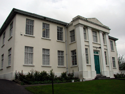 Detached nine-bay two-storey former technical school, built c.1930, with three bay central pedimented breakfront. Now in use as vocational school. Hipped tile roof. Rendered walls with pilasters flanking breakfront openings, with continuous sills, string course and cornice. Steel casement windows with stone sills. Pair of timber panelled doors with overlight. Rendered gate piers and plinths with wrought-iron railings and gate.