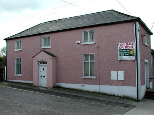 Detached three-bay two-storey house, built c.1800, set perpendicular to the street line. Projecting entrance porch with remains of a stone open pediment. Roughcast rendered walls. Hipped tile roof. Timber panelled doors to porch and to west gable. Built as a pair with the house to the north.