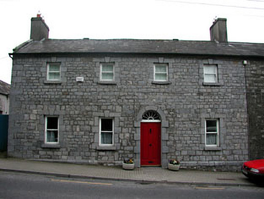 Semi-detached four-bay two-storey house, built c.1760, with a two-storey return to rear. Exposed stone wall to front elevation, and roughcast rendered walls to north gable end and rear elevation. Pitched slate roof with two rendered chimneys and cast-iron rainwater goods. Tooled limestone round-headed block-and-start door surround with a timber cornice, a neo-Classical style fanlight and a limestone threshold. Limestone block-and-start surrounds and limestone sills to window openings.