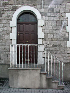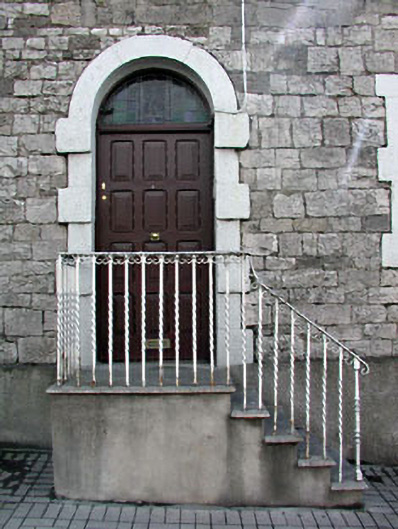 This house was built as a pair with the house to the north. These houses were built in the mid to late eighteenth-century as part of the planned estate town of Slane. They were constructed using local limestone and have some fine door and window surrounds. The stained glass fanlight was designed by the artist Evie Hone who was a visitor to the adjoining house.