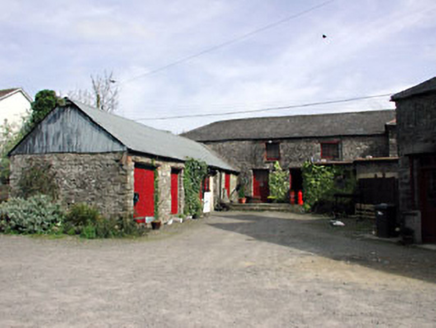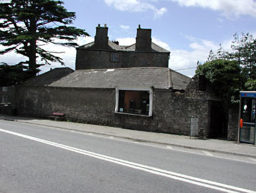 Detached four-bay single-storey former outbuilding, built c.1760, now in use as a shop. Hipped slate roof with brick chimney. Rubble stone walls with a limestone eaves course, and with a cut limestone blind arcade to the south gable. Blocked up door opening to east elevation with block-and-start surround. Linked to the formerly related house by screen wall. Four-bay single-storey outbuilding to rear.