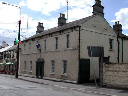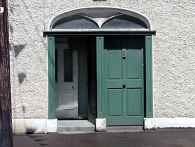 End-of-terrace six-bay two-storey house, c.1840, on an L-shaped plan; single-bay (single-bay deep) two-storey return (north). In alternative use, 1901; 1911. Vacated, 1925. Adapted to alternative use, 1928. Pitched slate roof; pitched slate roof (north), clay ridge tiles, rendered chimney stacks centred on rendered chimney stack on cushion course on rendered base having stepped capping supporting terracotta or yellow terracotta octagonal pots, and cast-iron rainwater goods on rendered eaves on paired ogee corbels retaining cast-iron downpipe. Roughcast walls to front (south) elevation on rendered plinth; rendered surface finish (remainder) with remains of rusticated rendered piers to corners. Paired Tudor-headed central door openings in elliptical-headed recess with dragged cut-limestone step thresholds, and timber doorcases with panelled pilasters on padstones supporting cornice framing timber panelled doors having overlights. Square-headed window openings (ground floor) with drag edged dragged cut-limestone sills, and concealed dressings framing six-over-six timber sash windows. Square-headed window openings (first floor) with rendered stepped sill course, and concealed dressings framing six-over-six timber sash windows. Street fronted with tarmacadam footpath to front.