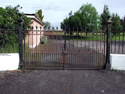 These fine cast-iron gates and railings once led to Athboy Lodge, which is now demolished. Artistic design and detailing is apparent in their casting and manipulation. They contribute to the streetscape, though they now give access to a mid twentieth century school.