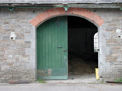 Detached five-bay single-storey former station, built c.1863, having four-bay two-storey former station masters house with extension to north. Now in use as veterinary clinic. Pitched slate roof with brick chimneystacks. Snecked stone walls with integral segmental carriage arch and ashlar limestone or red brick dressings. Timber sash or cast-iron windows with stone sills. Limestone kerbing of former platform to site.