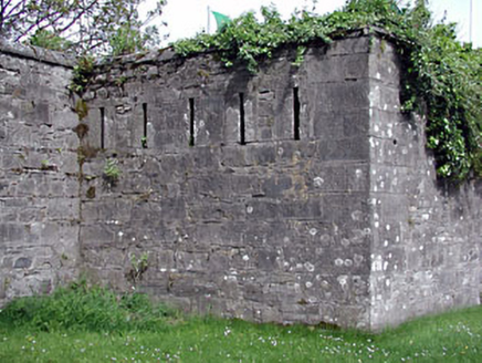 These substantial defensive walls formerly protected the Royal Irish Constabulary Barracks. The classical entrances are of high architectural design. The defensive nature of the wall, particularly the use of gun loops, is unusual within the context of Trim where the architecture is predominantly domestic or commercial.