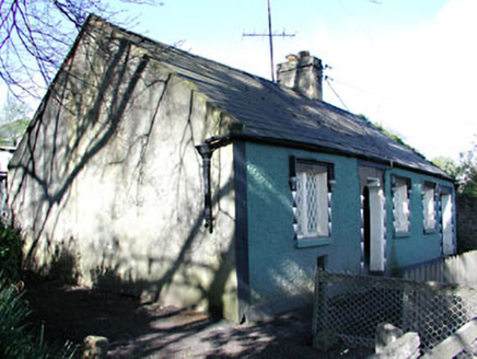 Detached five-bay single-storey house, built c.1890. Pitched slate roof with cement rendered chimneystack and cast-iron rainwater goods. Square-headed openings with paired cast-iron diamond pane windows having central mullion, stone sills, and label mouldings with label stops. Shoulder and flat-arched door openings with timber battened doors.