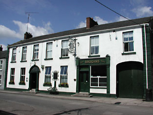 End-of-terrace seven-bay two-storey former hotel, built c.1850, now in use as guest house and public house. Pitched artificial slate roof with rendered chimneys. Rendered walls with render quoins. Timber panelled door with engaged Doric pilasters having fluted frieze and plain glass fanlight. Approached by limestone steps with cast-iron bootscraper. Integral carriage arch gives access to stone outbuildings to rear.