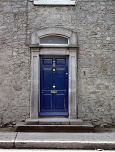 End-of-terrace four-bay two-storey over concealed basement house, built c.1830. Exposed stone facade. Hipped slate roof. Segmental-arched stone doorcase with panelled door and fanlight. Stone entrance steps and cast-iron bootscraper. Timber single pane sash windows with convex horns to ground floor. Timber six-over-six sash windows with convex horns on upper floor. Segmental-arched integral carriage arch with ashlar stone surrounds and timber battened doors.