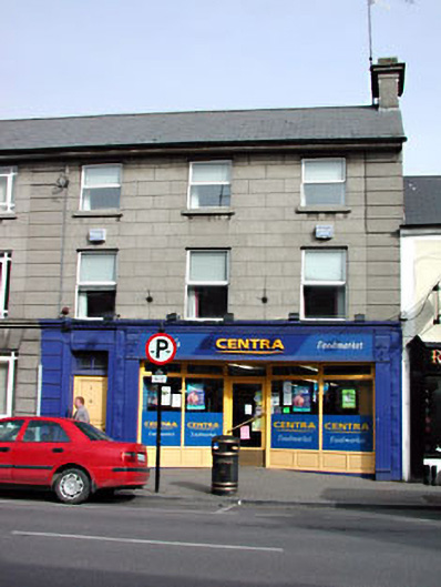 Terraced three-bay two-storey house, built c.1920. Channelled cement rendered walls with rendered quoins and string course. Pitched slate roof with cement rendered chimneystack. Original timber panelled door with glazed overlight, set in rendered door surround. Built as pair with house to west. Modern shopfront to ground floor.