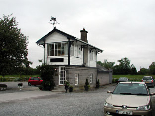 Detached gable-fronted single-bay two-storey former signal box, built c.1862, now in use as hotel accommodation. Pitched artificial slate roof with rendered chimneystack. Rock-faced limestone and ashlar cornice to ground floor with timber clapperboard to first floor. Replacement windows and doors.