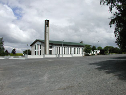 Detached gable-fronted church, built 1967. Five-bay side elevations to nave, with single-bay entrance porch to the south and two-bay chancel to the north. Flat-roofed sacristy to the north. Pitched copper-clad roof with rendered chimneystack. Roughcast rendered walls with concrete buttresses and date plaque. Triangular- and square-headed openings with concrete sills and stained glass windows. Triples of pointed stained glass windows to nave. Stained glass windows and glazed timber doors to entrance gable. Interior is intact. Freestanding square-profiled roughcast rendered bell tower. Site is enclosed by roughcast rendered wall with steel gates.