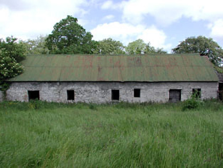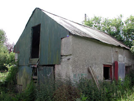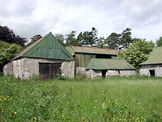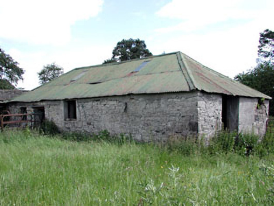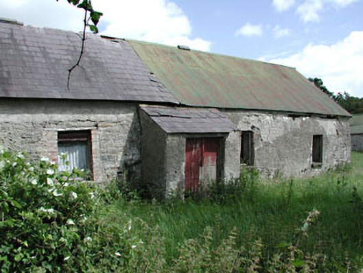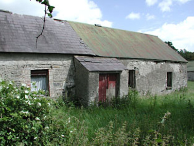 Detached four-bay single-storey farmhouse, built c.1900, with central porch, now vacant. Pitched roof with slate to west end and corrugated-iron covering thatch to east end. Rendered rubble limestone and clay walls. Square-headed openings with stone sills. Timber door to porch, and timber battened double doors to east end. Three ranges of outbuildings to north-east with rubble limestone and clay walls, corrugated-iron roofs and square-headed openings.