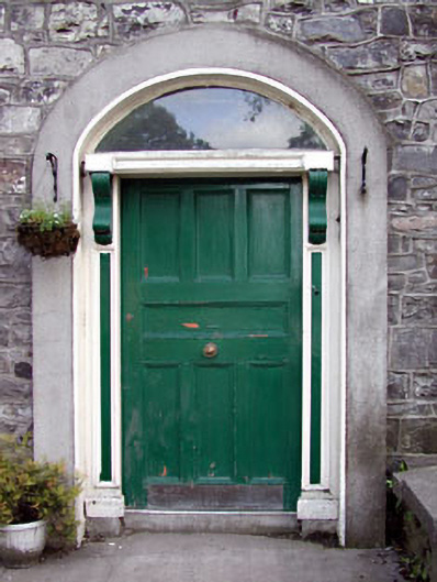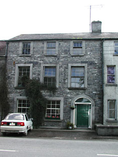 Terraced three-bay three-storey house, built c.1820. Pitched slate roof with rendered chimneystack. Exposed rubble limestone walls. Replacement windows and surrounds. Round-arched opening with panelled timber door and timber pilasters with console brackets, cornice and plain fanlight.