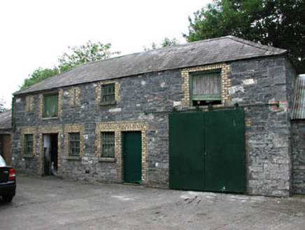 Detached six-bay two-storey coach house-cum-stable outbuilding, built c.1870. Hipped slate roof. Squared stone walls. Timber sash windows with yellow brick dressings and granite sills. Timber battened doors with yellow brick dressings. Two-bay single-storey outbuilding to south.