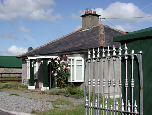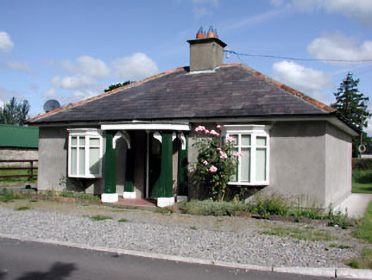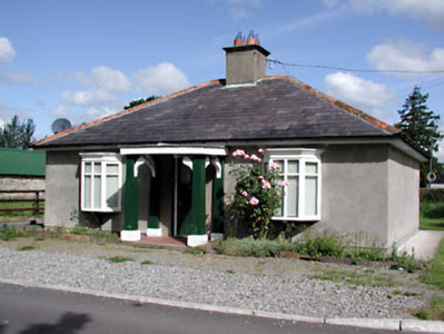 Detached three-bay single-storey former gate lodge, built c.1880, now in use as private house. Hipped slate roof with rendered chimneystack and cast-iron rainwater goods. Rendered walls. Timber bay windows flanking projecting timber porch. Glazed timer door. Bounded by rendered wall and gate piers with pair of cast-iron gates.