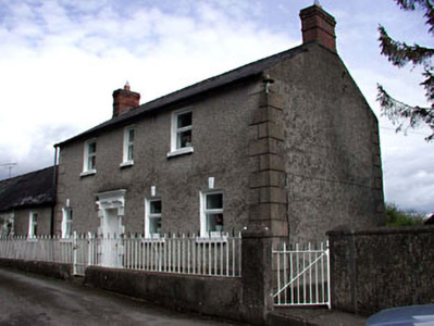 Detached two-storey four-bay house, built c.1820. Constructed of randomly coursed limestone with roughcast render and raised rendered quoins. Pitched slate roof with clay ridge tiles and cast-iron rainwater goods. Brick chimneystacks to north and south gables. Square-headed openings to windows with stone sills and rendered keystones with replacement uPVC windows. Replacement timber door with rendered block-and-start surround and lintel to centre of main (west) elevation. Cast-iron gate and railings to main (west) elevation. Single-storey single-bay extension to north with corrugated metal sheet roof. Single-storey three-bay building constructed of random rubble with pitched corrugated metal roof attached to extension to north. This may have been a separate dwelling in the past but is now used as an outbuilding. Outbuilding to west with diamond-pattern cast-iron windows, now in use as garage.