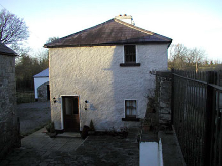 Detached two-storey five-bay former mill house built c.1840. Hipped natural slate roof with clay ridge tiles and two rendered chimneystacks flanking central bay. Walls built of random rubble stone with lime rendering. Projecting rendered eaves course and rendered base course. Square-headeded window openings with granite sills and replacement timber sash windows. Modern replacement door with semi-circular headed opening. The principal façade (west) faces into yard. No windows to east façade facing road. Coach house and stables built of random rubble stone with hipped corrugated metal roof to north. A well is built into roadside embankment to south.