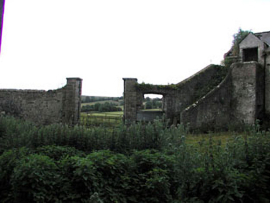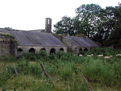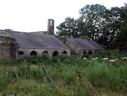 Farmyard complex, built 1820, including (west): Detached seven-bay single-storey stable block with half-attic on a symmetrical plan centred on single-bay full-height pedimented breakfront. Now in ruins. Roof now missing with no rainwater goods surviving on cut-limestone eaves. Part ivy-covered rubble stone walls with remains of cut-limestone monolithic pediment (breakfront). Elliptical-headed central carriageway with cut-limestone voussoirs. Square-headed door openings with cut-limestone voussoirs. Square-headed window openings with cut-limestone sills, and cut-limestone voussoirs. Set in overgrown grounds originally shared with Herbertstown House with margined tooled limestone ashlar piers to perimeter having "Cavetto"-detailed beaded cornices below capping supporting spear head-detailed cast-iron double gates.