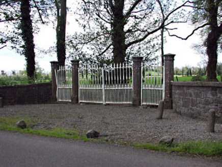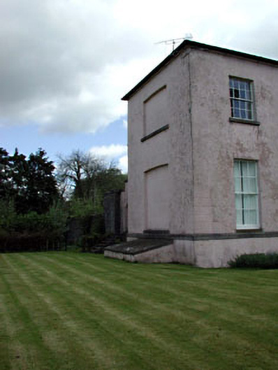 Detached five-bay two-storey over basement country house, built c.1801, with central breakfront. Earlier house to rear. Hipped slate roof. Rendered walls with limestone string course between basement and entrance level. Wrought-iron balcony to first floor window over entrance. Timber sash windows with stone sills. Carved limestone doorcase with timber panelled door and fanlight, approached by flight of limestone steps. Paired fluted octagonal piers with cast-iron single and double gates.