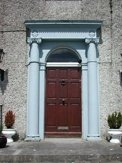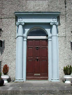 Detached five-bay two-storey house over basement, built c.1780. Rendered walls with string course between basement and entrance level. Timber sash windows with stone sills. Carved stone doorcase with engaged Ionic columns and entablature above, approached by flight of stone steps. Remains of outbuildings to the west.