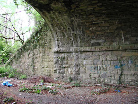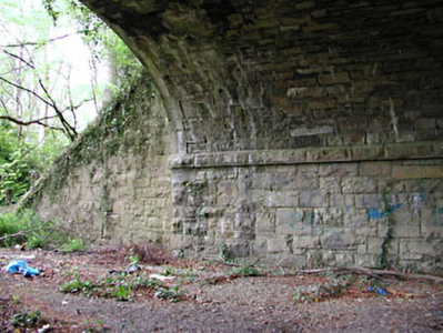 The masonry treatment of this railway bridge adds textural interest to the site. The masonry was clearly executed by skilled craftsmen. This bridge forms part of a group with the related railway structures along this disused line.