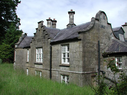 Detached four-bay single-storey over basement former estate manager's house, built c.1900, now vacant. Comprising a stepped gabled breakfront, flanked by single bays, with an angled terminating bay having canted bay window to the west gable. Pitched slate roof with curved gables and ashlar limestone chimneystacks. Snecked limestone walls with string course between floors. Timber sash windows set in openings with ashlar limestone dressings.
