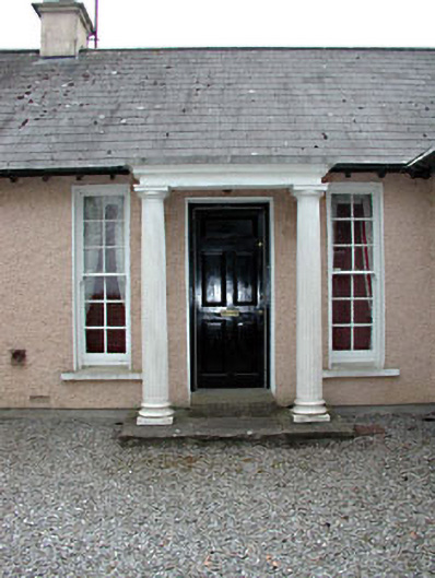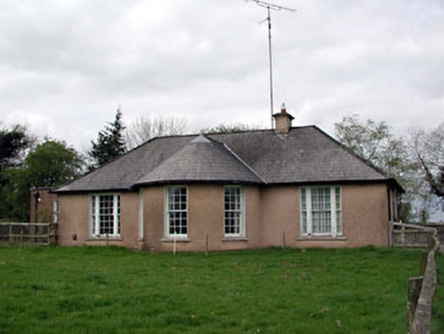 Detached L-plan three-bay single-storey gate lodge, built c.1805. Projecting central bay to rear. Single-bay extension to west façade. Replacement windows, sills, doors and roof tiles. Cast-iron railings and gates.