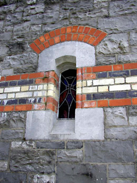 Detached single-cell Gothic Revival church, built in 1876. Constructed of rock-faced limestone with polychrome brick detailing and string courses. Pitched two-tone natural slate roof, decoratice terracotta ridge tiles and cast-iron rainwater goods. Five-bay nave with pointed-arched stained glass windows (some in pairs) and stone sills. Gable-fronted porch to west with pointed-arch door opening with brick surrounds and pair of timber doors. Bell tower on rectangular plan with conical slate spire, surmounted with cast-iron weather vane, attached to west at the junction of the nave and the chancel. Single-bay chancel to north with gable-fronted sacristy attached to west. Three lancet windows light chancel with nave lit by three lancet windows above five smaller lights all with brick surrounds. Both nave and chancel gables are surmounted with carved stone crosses. Marble altar with medieval font to interior. Roof supported on king post trusses with diagonal struts. Limestone gate piers with cast-iron gates and cast-iron railings on limestone boundary wall. Graveyard to east.