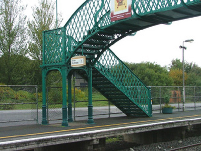 This fine bridge was originally taken from Roscrea and erected at Tullamore. Skillfully produced in the foundry of E. Manisty at Dundalk, this bridge is a aesthetic addition to the group of structures at Tullamore station.