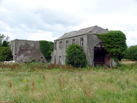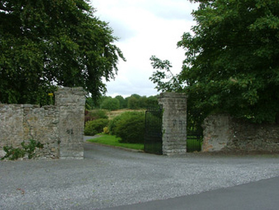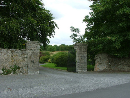 Detached L-plan five-bay two-storey school house, built c.1720. Now disused. Set within the former demesne of Cuba Court. Hipped slate roof with terracotta ridge tiles. Rendered walls. Square-headed window openings with limestone sills, round-headed door opening and carriage arch opening. Site accessed through stone gate piers with cast-iron gates.