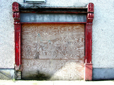 Though in a sadly dilapidated state, this simple house retains much original fabric. Functional in design, its well proportioned façade, incorporating a shopfront with finely crafted console brackets, makes for a pleasant addition to the streetscape of Kilcormac. Its style is reflective of Irish vernacular houses, with the upper window set neatly beneath the eaves.